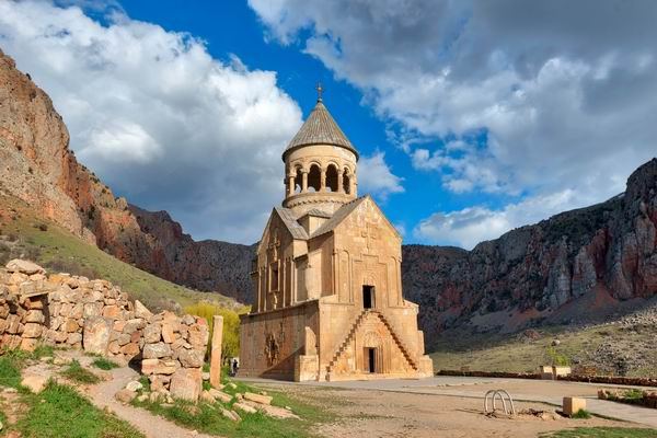 建于1105年的诺拉旺克修道院可以说是众多修道院中的佼佼者。它坐落于悬崖雪山之间,是世界上第一座在外墙修建楼梯的双层宗教建筑,从远处眺望,诺拉旺克修道院有种“遗世而独立”的柔美感。相比之下,格加尔德修道院是中世纪亚美尼亚修道院迄今为止整体建筑和装饰艺术保存最为完整的代表,它依山而建、气势恢宏。