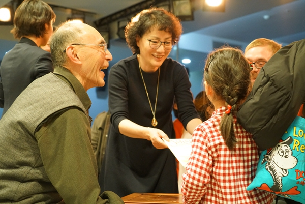 12月8日,杨志成先生受北京蒲蒲兰文化的邀请返沪,在宝山区图书馆举办了读者见面会,与童书推广人张弘、新锐绘本画家金晓婧进行了现场交流。见面会活动吸引了200余人到场,现场直播则有7000余人观看。年近90岁的杨先生在活动现场坐在瑜伽球上做分享,让大家惊讶不已。