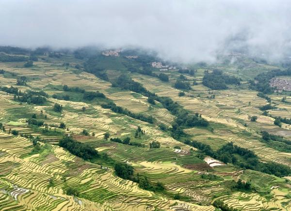 2019年9月9日,云南省红河哈尼族彝族自治州元阳县哈尼梯田遗产区核心区,一场雨就要到来。澎湃新闻记者 刁凡超 图