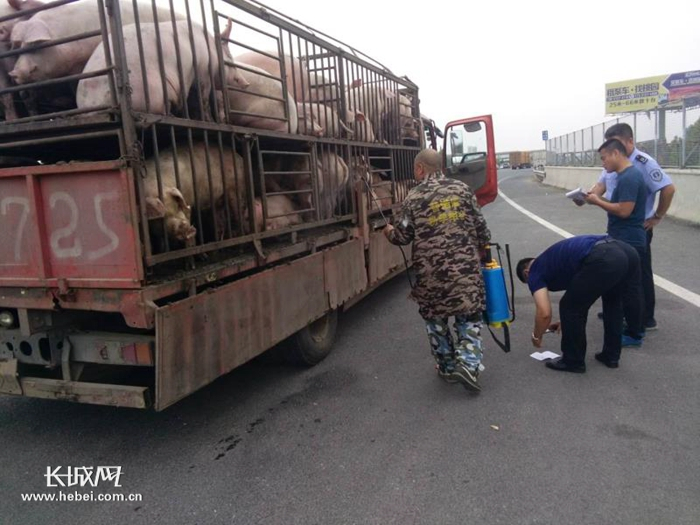 生猪运输环节消毒。 本网资料图