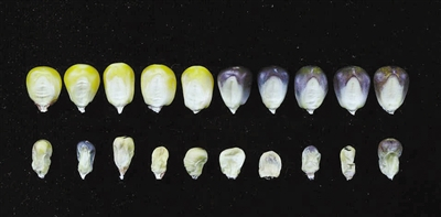 其实,这是玉米的天性使然。玉米基因中有很多非常活跃的转座子,它们就像一支“小画笔”,跳到哪个基因上,就会抹去那里本来的“颜色”。因此导致籽粒颜色变化有一部分是转座子运动产生的。