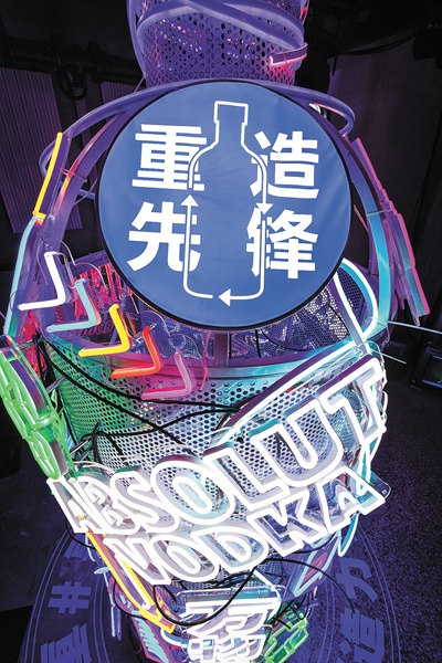 12月6日,“绝对伏特加”在北京市东城区隆福寺街95号钱粮胡同的木木艺术社区举行了一场名为“重造之夜”的限量版产品发布派对,展现了品牌所倡导的可持续发展创意风尚。派对现场,由废弃铁丝、灯管等回收物再造而成的巨型酒瓶艺术装置表达了品牌“万物重造”的理念。另一亮点则是现场的可持续鸡尾酒吧台,为来宾提供了四款新颖且具有创新概念的可持续鸡尾酒。
