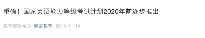 今年1月份,教育部考试中心曾透露,在量表的基础上,教育部考试中心正在研发中国英语能力等级考试,当时正在研发对应高等教育阶段相应级别的考试。