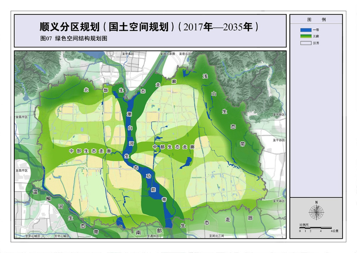 结合顺义区城生态空间布局特征,加强相邻地区的生态管控,串联浅山区、温榆河、汉石桥湿地以及组团间绿色空间等重要的生态绿楔,结合第二道绿化隔离地区生态建设,在顺义区北部、中部、南部形成三条东西向生态绿廊,强化平原生态景观及屏障功能,防止城镇连片发展、无序蔓延。
