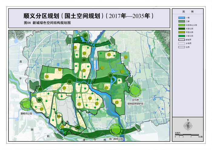 以落实全市“一屏、三环、五河、九楔”市域绿色空间结构为重点,围绕五河之一的潮白河,依托潮白河万亩森林公园,着力打造潮白河生态功能带。