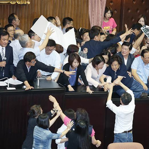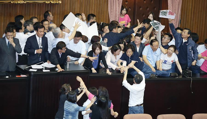 目前,台湾岛内存在近300个政党。民进党当局祭出的“政党法”,将使众多“一人政党”或“僵尸政党”难以生存。图为台“立法院”乱象。(图片来源:台湾“中时电子报”资料图)