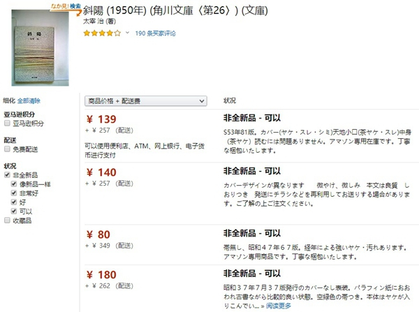 日亚上二手书的品相描述