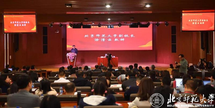 涂清云代表学校向大会表示祝贺。他表示,在新中国成立70年之际,北师大语文教育研究所携手全国语文教育专家学者,共同回顾新中国语文教育改革发展之路,探讨语文教育教学规律,意义非凡。北京师范大学是全国师范教育的排头兵,前身是1902年创立的京师大学堂师范馆,百余年来,一大批名师先贤在这里弘文励教。学校秉承“学为人师,行为世范”的校训精神,形成了“治学修身,兼济天下”的育人理念。今天举行这场学术研讨会,这不仅是北师大的一件大事,也是新中国语文教育史册上的盛事。他高度肯定了北师大语文教育研究所在学科建设、理论研究、实践探索和人才培养等方面取得的成绩。他谈到,北师大语文学科既要承继传统,又要担负起新时代的重任,希望本次研讨会能成为北师大乃至全国语文教育的一个新起点。