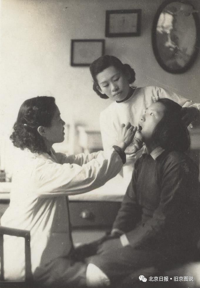 民国期间,校医给学生检查口腔。