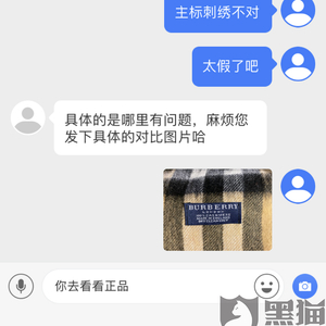 消费者“洁思陈-”在12月18日向黑猫投诉平台再次反映:“请问你这是什么平台啊!? 千万别相信这种平台了!钻空子赚黑心钱,是不是真的大家都看得见!会说要中检的鉴定报告,那您倒是帮我联系上中检啊,鉴定费我自己出!看看你有没本事找到中检,看看中检给不给做围巾的鉴定啊!中检根本就不受理 我找专业鉴定师的鉴定就说是假的,不承认自己售假!真黑心,不承认我的鉴定师没关系。你来帮我联系中检啊,求你咯~ 我会怕你吗”