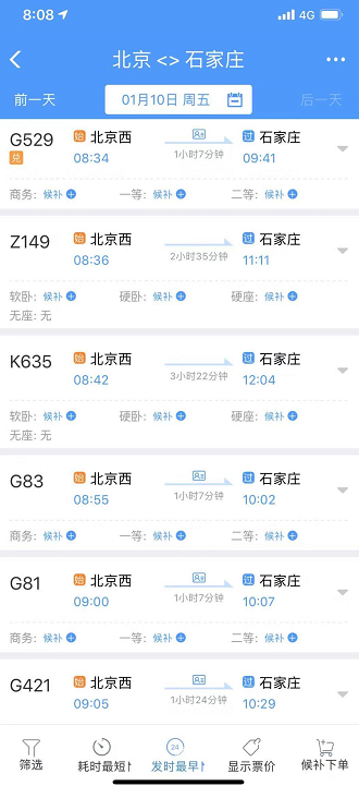而且,让人有点意外的是,石家庄、保定、邯郸等北京周边短途列车的车票预售也十分火爆!多趟列车已全列售罄。