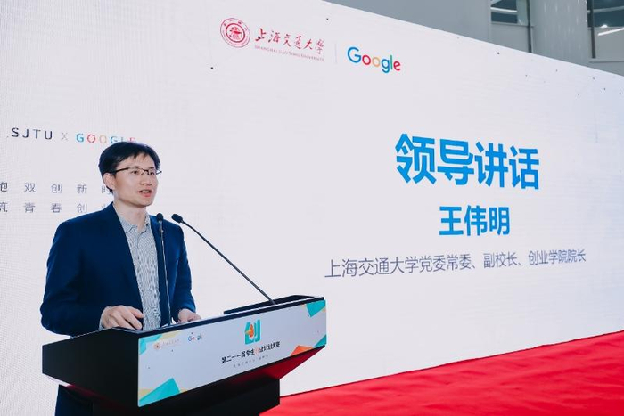 王伟明作大赛总结讲话。他对获奖团队表示祝贺,对谷歌公司的大力支持及各位决赛评委、辅导专家的辛勤工作表示感谢。他指出,学校自1999年开始持续推进创新创业教育,并积极探索构建研究型大学创业教育模式,通过开展课程体系、实践体系、支撑体系与国际化办学体系,将创新创业人才与地方政府、企业、投资机构、校友等社会资源相对接,助力创新创业成果的落地产出。他强调,学校将一如既往地推进创新创业教育,为同学们提供更好的资源与机遇,希望同学们珍惜时光、发奋图强,在新时代的伟大征程中,继续秉承交大创新创业的传统,为国家和社会做出新的贡献。