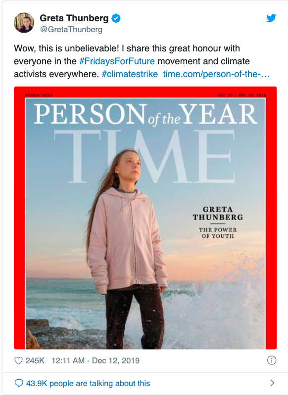 瑞典16岁“气候少女”获《时代》年度人物,国际评价两极化
