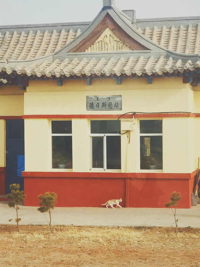 列车停靠在楚鲁图站。楚鲁图,蒙古语的意思是“石头地”。这座五等小站建于1953年,站舍是古色古香的庙式建筑,深居草原深处,人迹罕至。