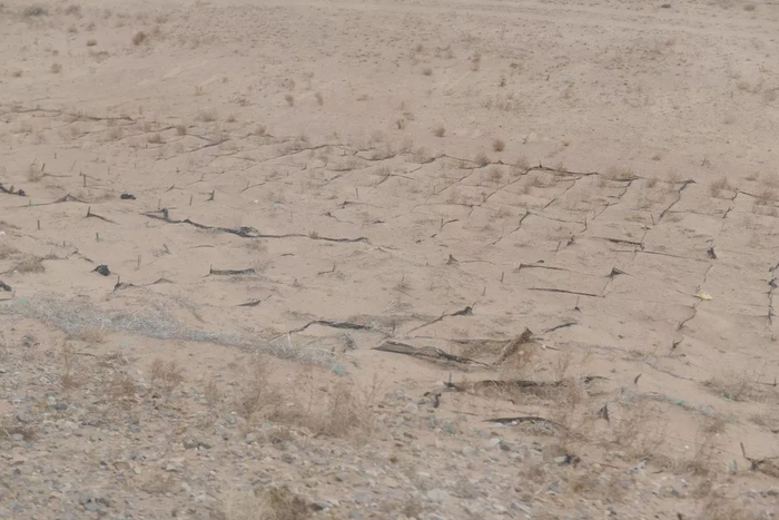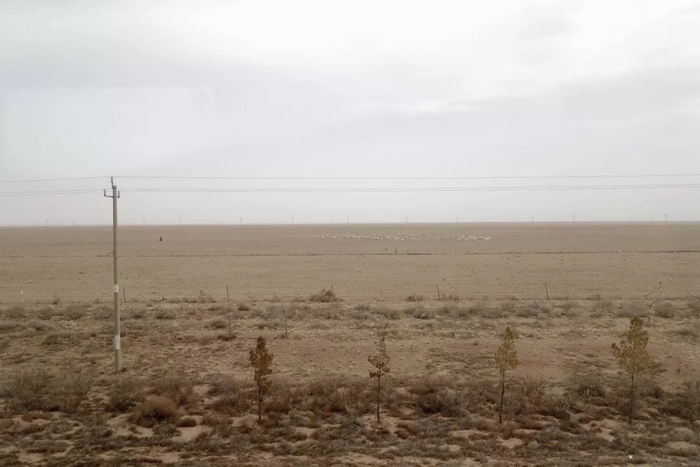 铁路线两侧的风沙隔离带。近些年来,铁路职工带头种树治沙,不仅护卫铁路,还改善了牧民们的生存环境。