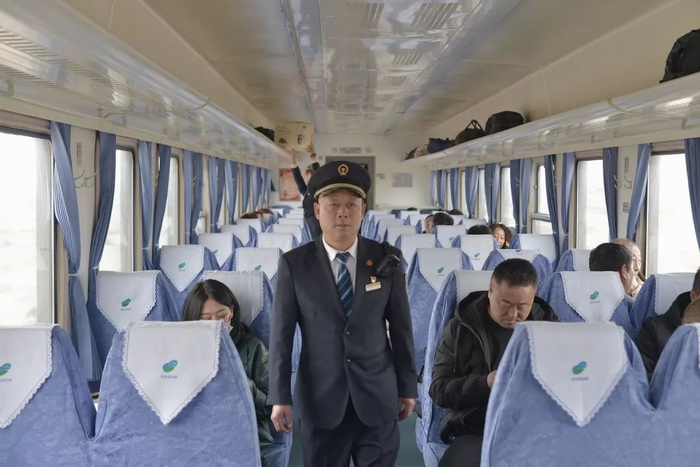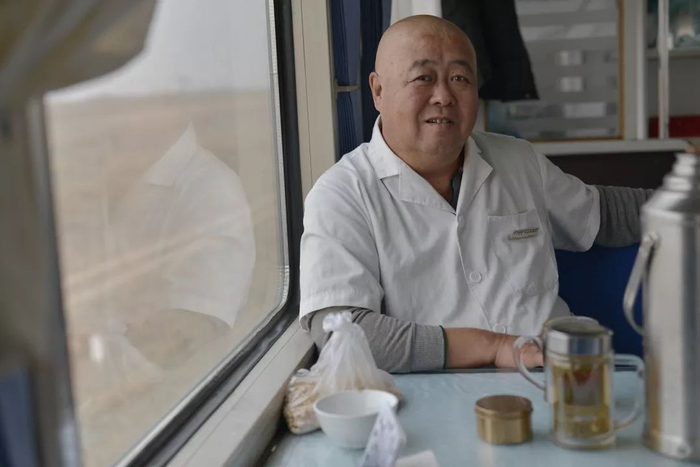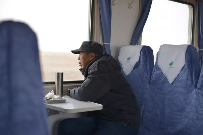 我从1984年开始坐这个车,当时的车次和现在的不一样,到现在已经35年了,车上好多人我都认识。以前这边的环境比较恶劣,春天的时候刮大风,车厢里尘土飞扬的,眼睛都睁不开。现在条件好多了,外面的环境也大有改善,每年7、8月份的时候,草就绿了。