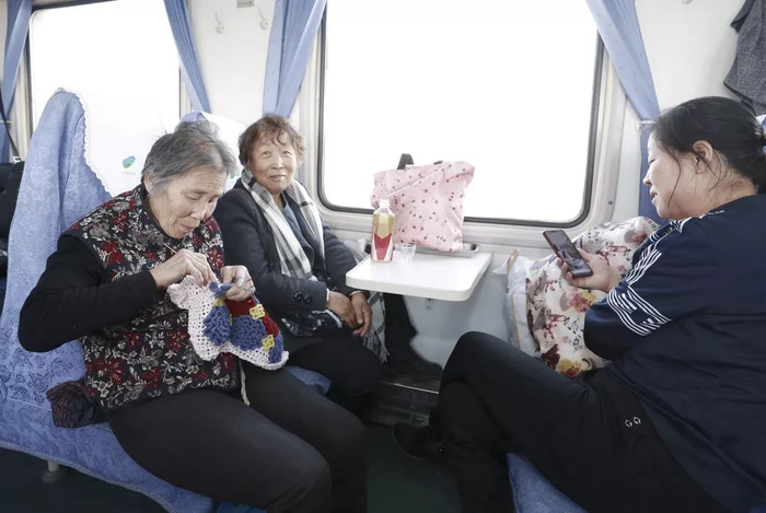 车上也有一些老人,用针线缝补流逝的时间。