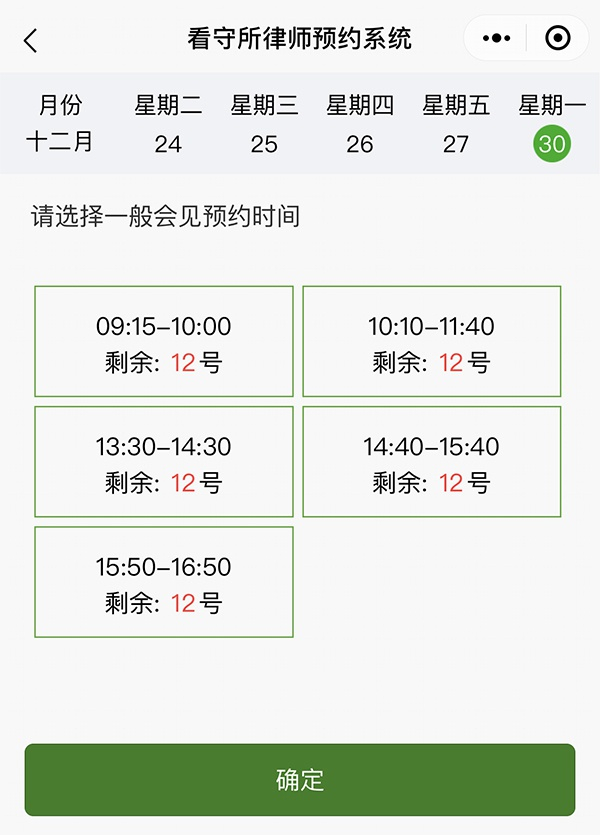 近日,上海浦东公安分局以浦东新区看守所为试点,全面推动律师会见网上预约工作。11月27日,一款名叫“监所律师会见”的微信小程序上线试运行,需要在浦东看守所办理预约登记的律师,可直接通过这款小程序进行会见预约登记,免去大排长队的烦恼。