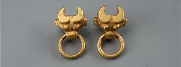牛首衔环金扣饰,刘家洼遗址出土