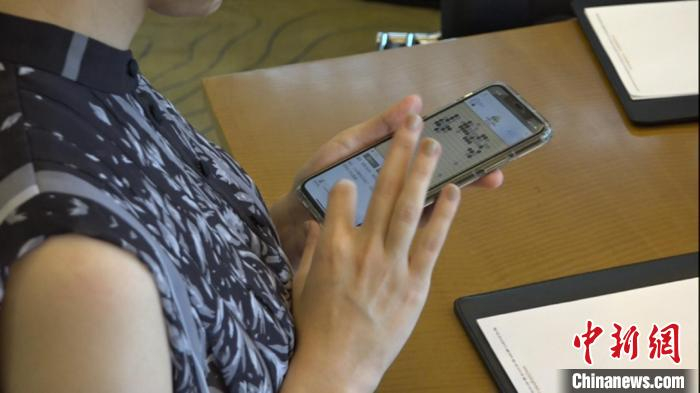 台湾美女棋手黑嘉嘉用手机与AI对弈 徐明睿 摄