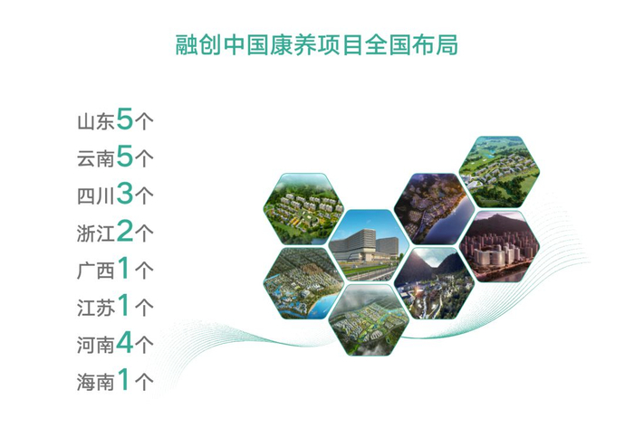 根据发布会提供的数据,目前融创在全国布局医疗康养项目22个,分别位于云南、山东、四川、浙江、海南等省。其中5个项目落地云南,包括昆明雁来湖小镇、昆明滇池南湾未来城、文山普者黑·阿诺小镇、普洱国际健康城,以及计划在玉溪落地的生态康养项目。