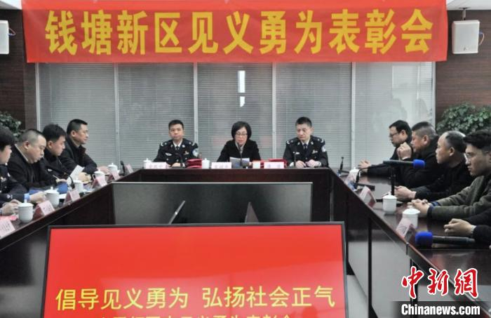 13日,张雪领见义勇为表彰会在杭州市公安局钱塘新区分局举行。表彰会上,杭州市见义勇为基金会常务副理事长宋谊平宣读了见义勇为表彰决定,追授张雪领同志“杭州市见义勇为勇士”称号,并向其家属颁发奖金40万元人民币。