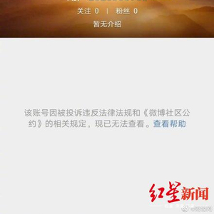 但今天,疑似孙宇晨新微博再次被封,相关页面显示,该账号因被投诉违反法律法规和《微博社区公约》的相关规定,现已无法查看。