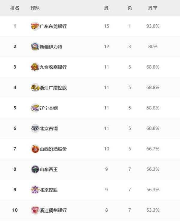 CBA本赛季第16轮战罢,各支球队的排位争夺战已经进入白热化阶段。