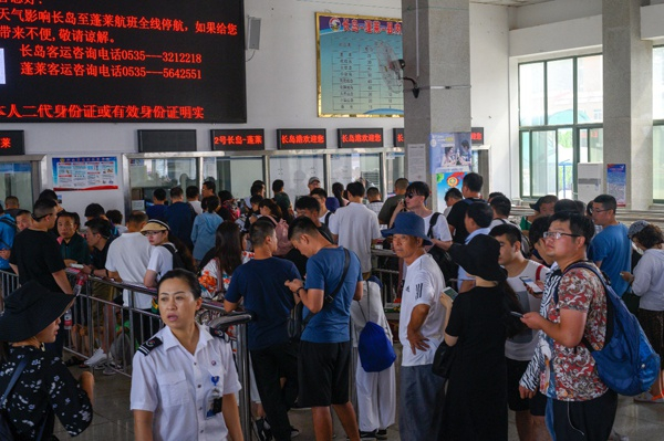 7月14日因天气原因,部分旅客滞留在长岛上无法出岛。复旦大学新闻学院 林森 图