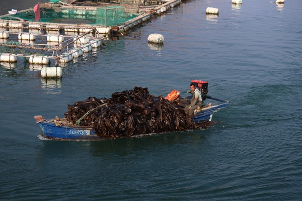北隍城岛上收获海带的渔民。 复旦大学新闻学院 张飞宇 图