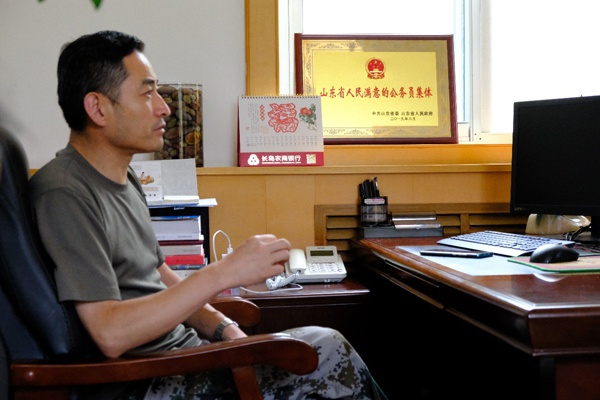 北隍城乡党委书记丰淑亮在接受“记录中国”报道团队的采访。 复旦大学新闻学院 胡渤皓 图