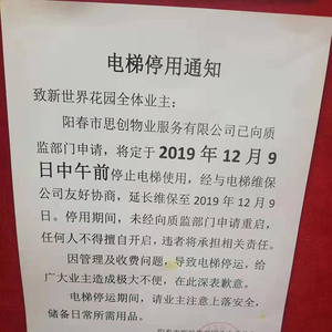 庄先生提供的电梯停用通知显示,电梯于12月9日中午前停用。 电梯关停,62岁老人爬九层楼后猝死