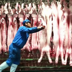 工人在整理到场的白条肉。 青莲食品供图