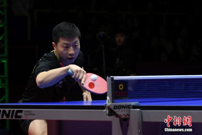 资料图:中国乒乓球协会主席刘国梁为马龙颁发中国公开赛冠军奖杯。中新社记者 陈文 摄