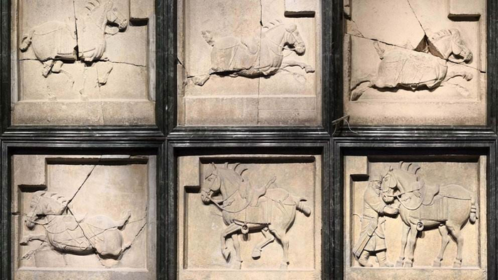 碑林博物馆中的昭陵六骏,其中二骏为复制品(图片来自网络)