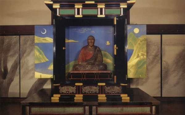 鉴真和尚坐像和佛龛,佛龛内部是东山魁夷创作的《瑞光》
