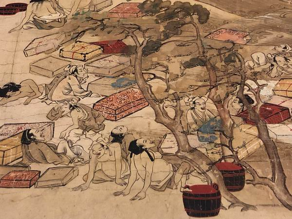 此次上博展出两卷,卷二(展出时间2019年12月17日至2020年1月12日)和卷五(展出时间2020年1月14日至2月16日)。为什么挑选第二卷和第五卷展出呢?金靖之介绍说,“因为第二卷描绘鉴真5次东渡中的4次失败受挫经历;第五卷描绘的是鉴真到达日本奈良后,在东大寺大佛殿前给圣武太上天皇、孝谦天皇等人授戒。之后又为400多个萨米授戒场景。
