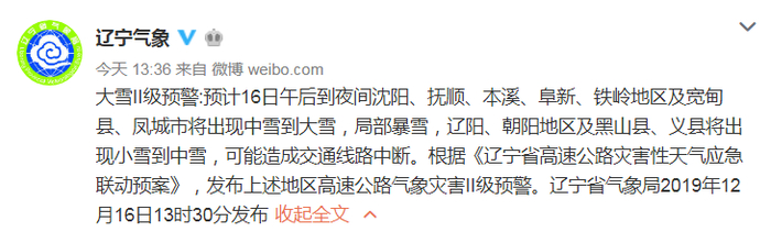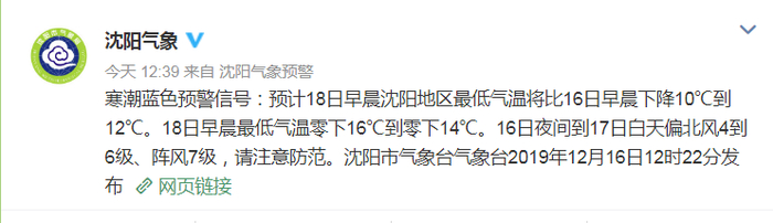 沈阳市气象台2019年12月16日15时发布