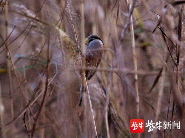 南京六合龙袍湿地里,芦苇上现稀罕鸟震旦鸦雀