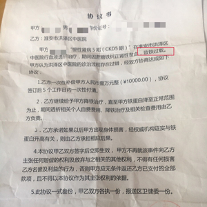 不到一个月的时间,洪泽区中医院与大部分患者迅速签署协议,现金补偿数万元,同时免费进行“去铁治疗”(期间透析同样免费)。