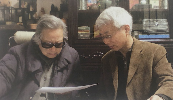 在费名瑶书房,陈佩秋先生仔细翻阅费名瑶《游刃金石》书稿