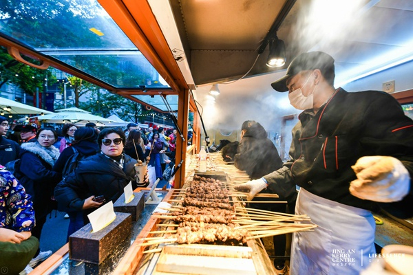 澎湃新闻记者从主办方嘉里建设(上海)有限公司获悉,12月8日这个周末夜市相关数据显示,7日客流33831人次,8日30751人次,两天的销售额共计802192元。嘉里建设(上海)有限公司助理总经理黄宁表示,“安义夜巷”也带动了周边商场相应客流,周末客流与去年同期对比上涨25.0%。