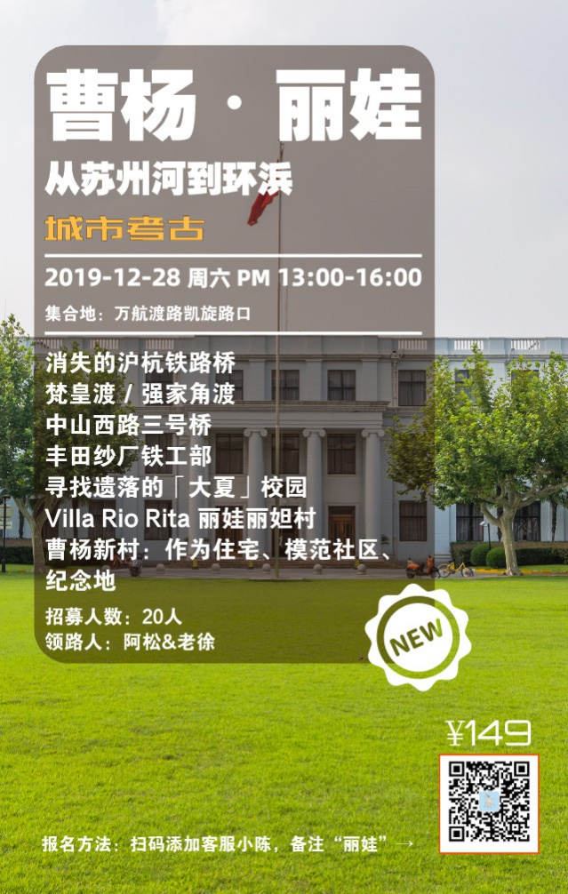 关键字:消失的沪杭铁路桥 / 梵皇渡 / 强家角渡 / 中山西路三号桥 / 丰田纱厂铁工部 / 寻找遗落的「大夏」校园 / Villa Rio Rita 丽娃丽妲村 / 曹杨新村:作为住宅、模范社区、纪念地