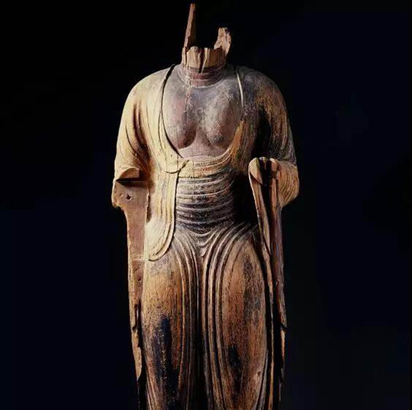 个人十分喜欢这座如来立像:木刻的衣褶流畅优美,如假似真,健硕丰满的体态挺拔而立,俊美非常。虽然首面和手臂已失,但仿佛多了一份残缺的美感,如同我们欣赏断臂的维纳斯,只会感受其美好的一面。