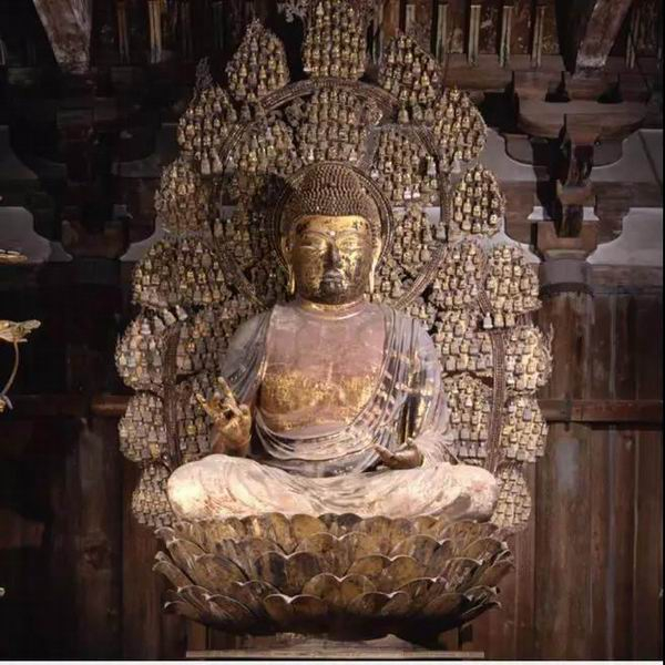 殿内正面三座大佛挺拔而立,分别是中央的卢舍那大佛,和位居两边的千手观音及药师如来。除药师如来,其他两件都是奈良时代的最初佛造像,保存完好;而千手观音真的是有近千只手,雕工细腻。
