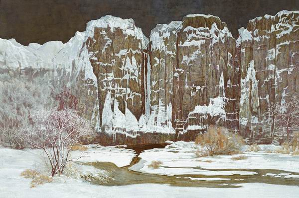 榆林窟˙雪(97×145cm)岩彩 2010年 侯黎明