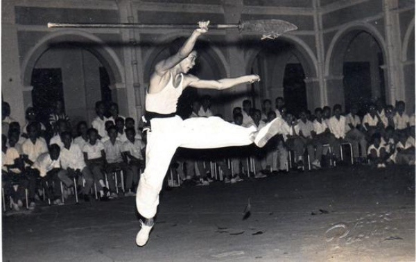 柿山结义堂老照片:二十世纪六十年代,柿山结义堂的弟子表演武术器械。