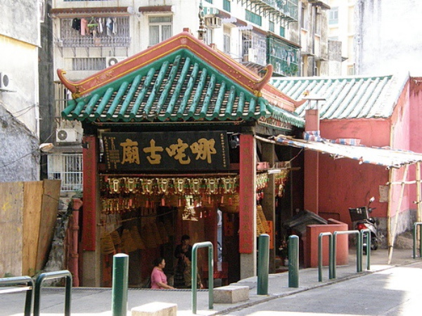 永远游人如织的大三巴,坐落在柿山山顶,半山腰,离挤满了讨彩头情侣的恋爱巷口不远,是一座小小的哪吒神庙。
