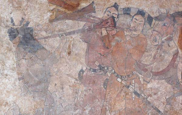 需要说明的,是该墓道壁画所反映的只是北朝军队的部分训练方式,北朝骑兵和步兵训练还有其他形式,在北魏墓葬壁画也有反映,由于超出本文范围,有待以后另文论述。