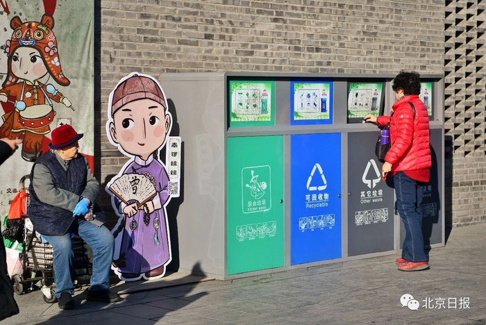 南锣鼓巷推行垃圾分类。邓伟/摄